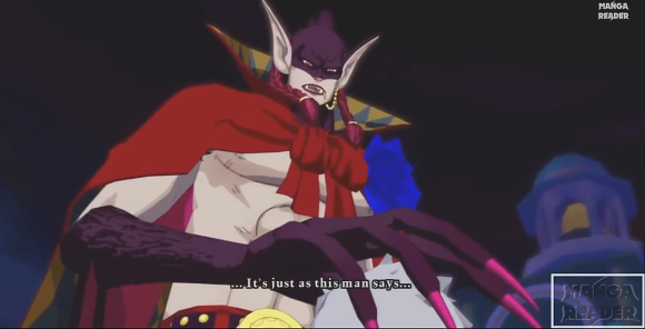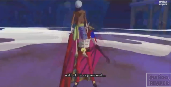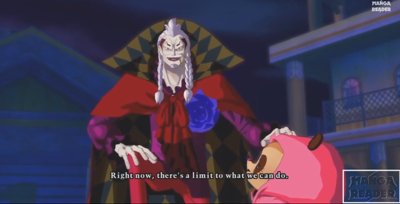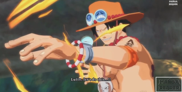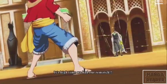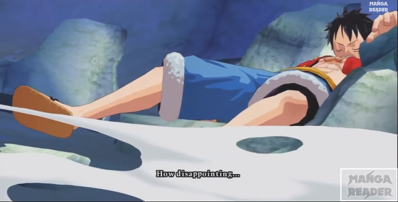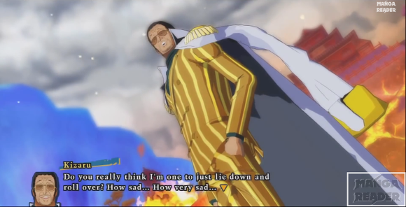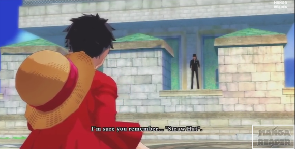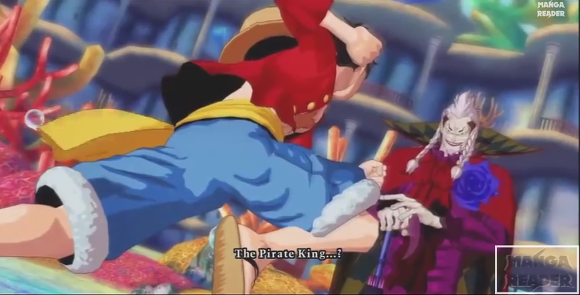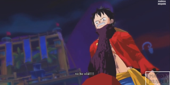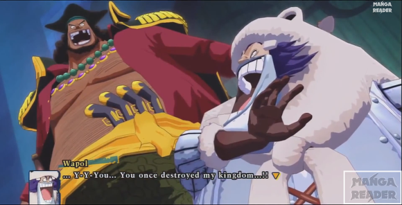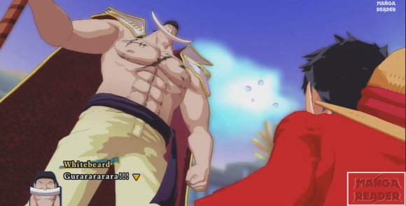 이후 루피가 '흰수염 아저씨는 비록 늙었지만 너 같은 것보다는 훨씬 멋지고 강했다!' 라고 도발한다.