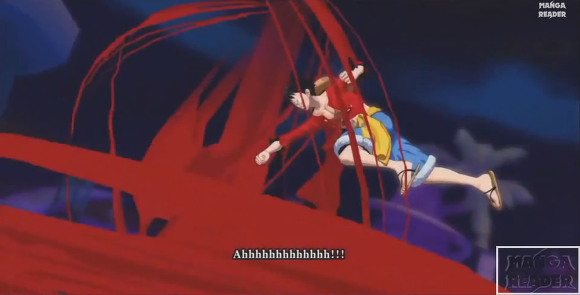 밀짚모자 일당을 미친듯이 몰아붙이지만 갑자기 한대 맞더니 쓰러진다.
