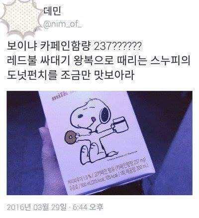 스누피 커피우유의 무서움 작성자gkrh|작성시간16.04.20|조회수9,979 목록 댓글 47 글자크기 작게가 글자크기 크게가 ㄷㄷ 다음검색 현재 게시글 추가 기능 열기 북마크 공유하기 신고 센터로 신고 댓글 댓글 47 댓글쓰기 답글쓰기 댓글 리스트 작성자또또딱스 | 작성시간 16.04.20 ??? 진짜 자주 마셨는데 잘잤는뒙 작성자카이팅을하자 | 작성시간 16.04.20 카페인 ㄷㄱ 삭제된 댓글입니다. 답댓글 작성자소믈리에 | 작성시간 16.04.20 카페인이 철분 흡수를 방해하고 이것이 빈혈을 유발 > 현기증과 같은 증세가 나타날수 있어여.. 카페인 자체는 각성효과라 정신이 말짱해짐 작성자KEYPAD | 작성시간 16.04.21 ㅁㅊ ㄷㄷㄷ 댓글 전체보기