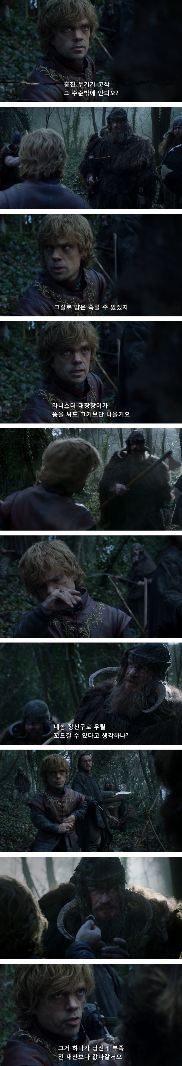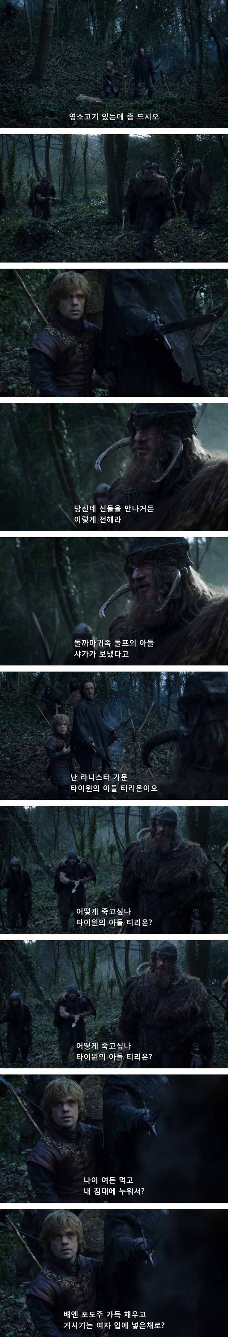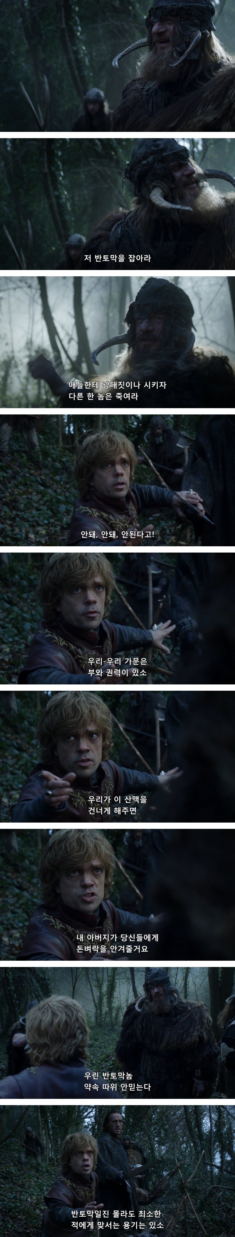 브론은 티리온이 휘파람을 신나게 불자, 사방에 언덕부족이 있다며 닥치라고 함