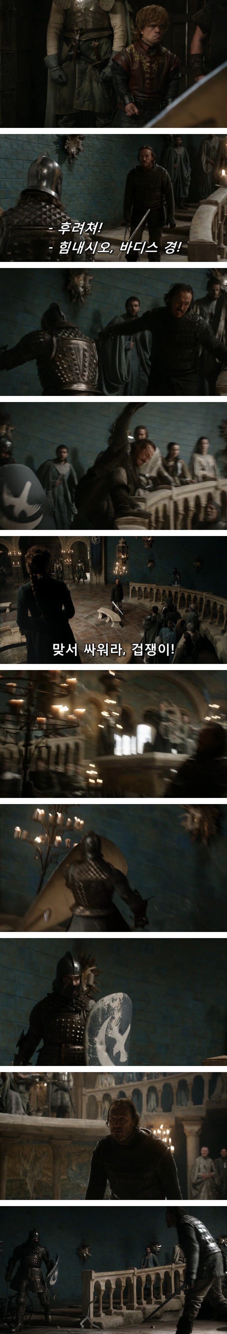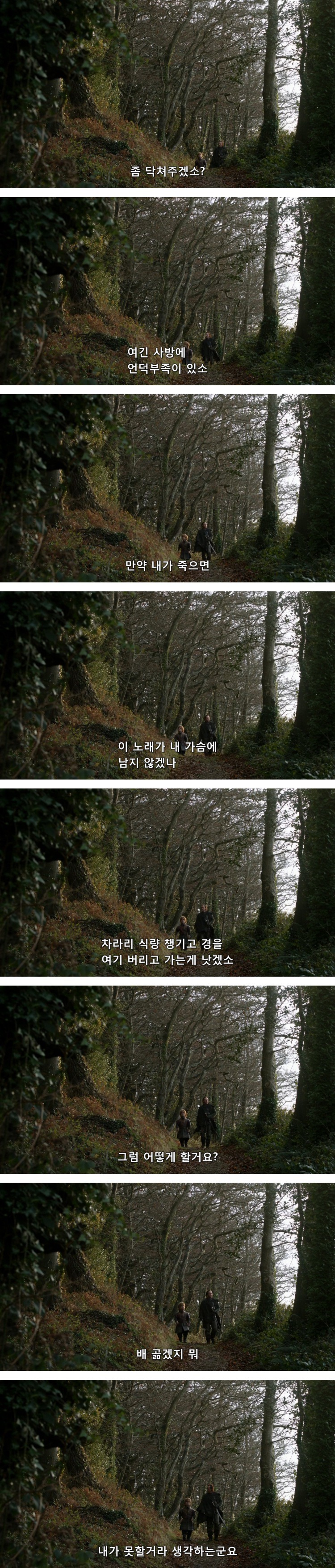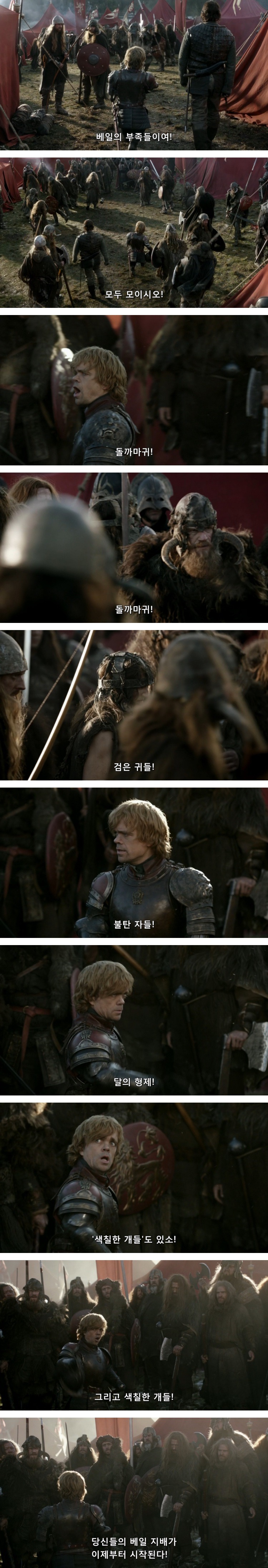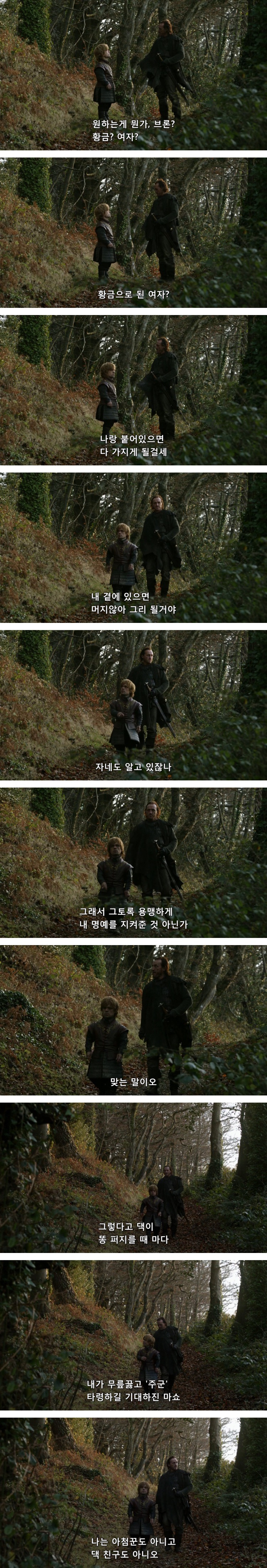 브론은 티리온이 휘파람을 신나게 불자, 사방에 언덕부족이 있다며 닥치라고 함