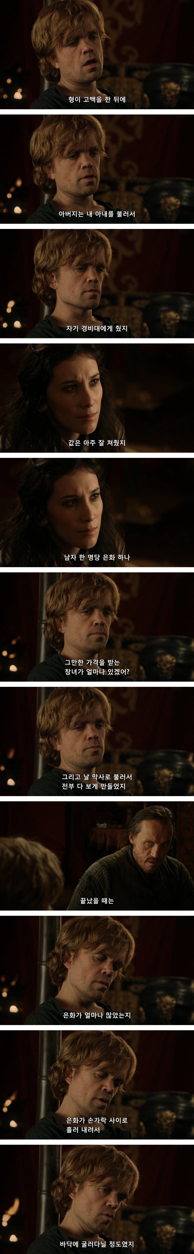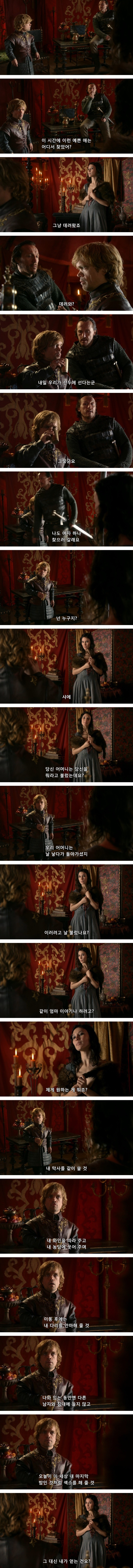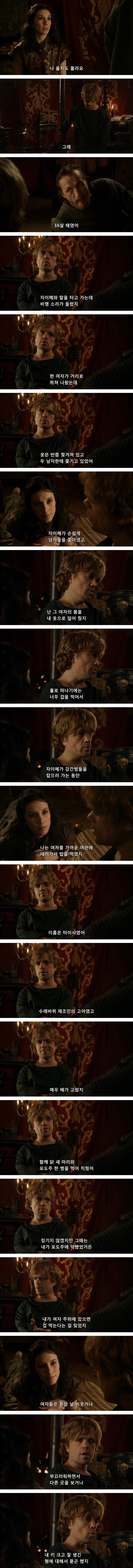 티리온은 처음부터 자기같은 난쟁이가 진정한 사랑을 하는 일은 불가능 할거라고 생각했음. 기대 조차도 하지 않았고.