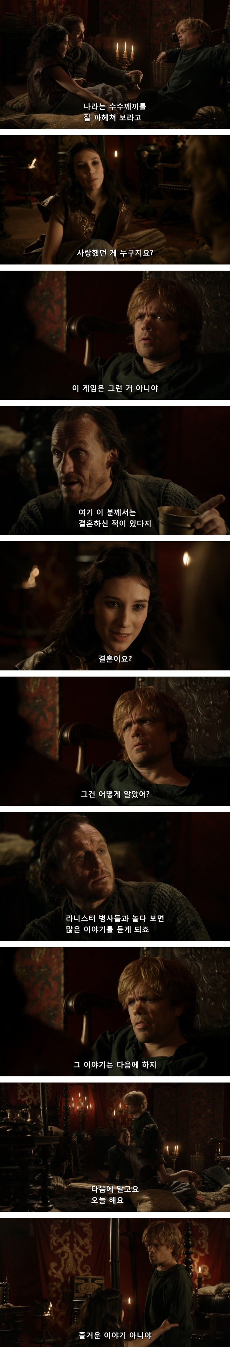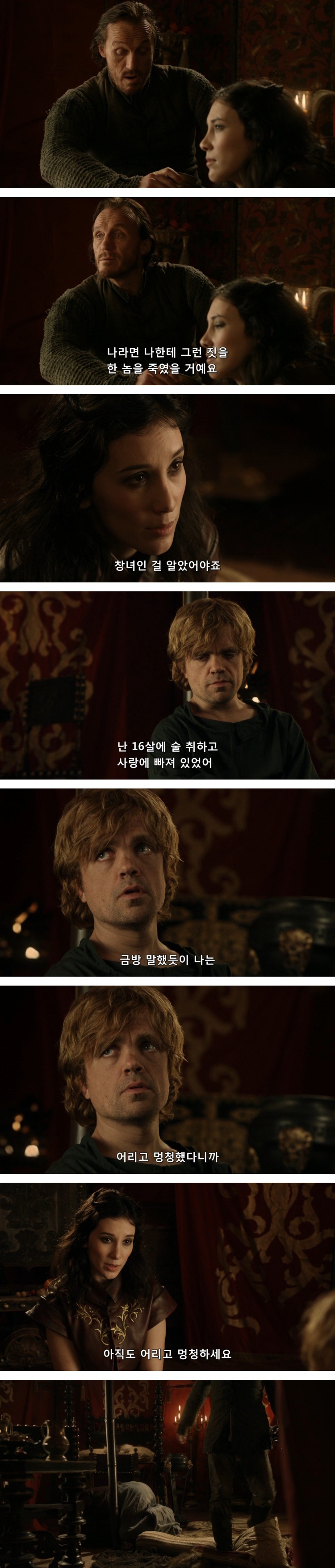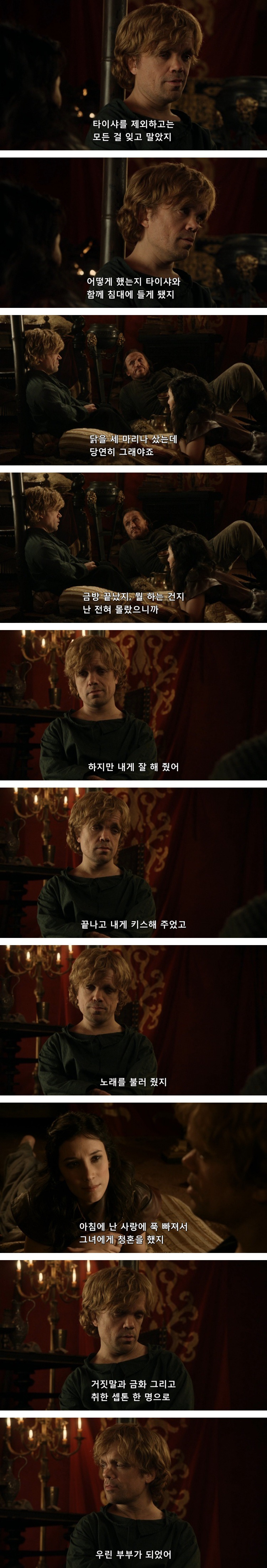 티리온은 처음부터 자기같은 난쟁이가 진정한 사랑을 하는 일은 불가능 할거라고 생각했음. 기대 조차도 하지 않았고.