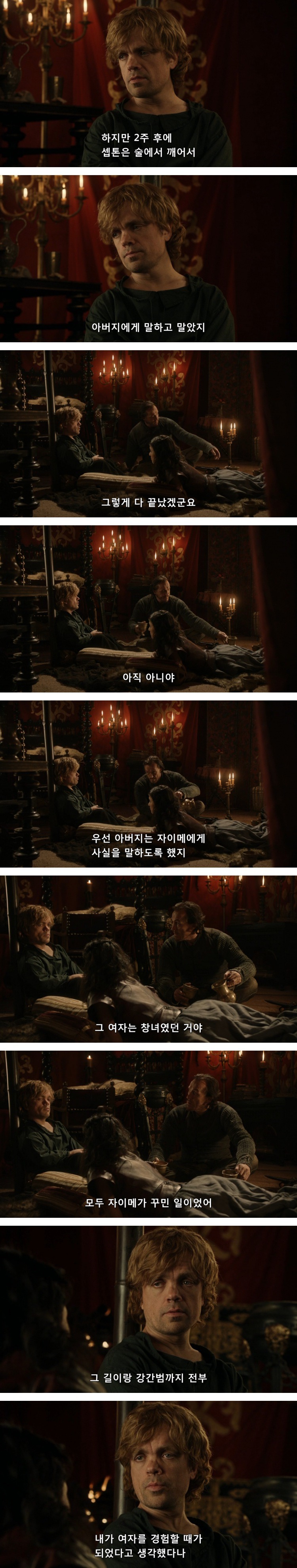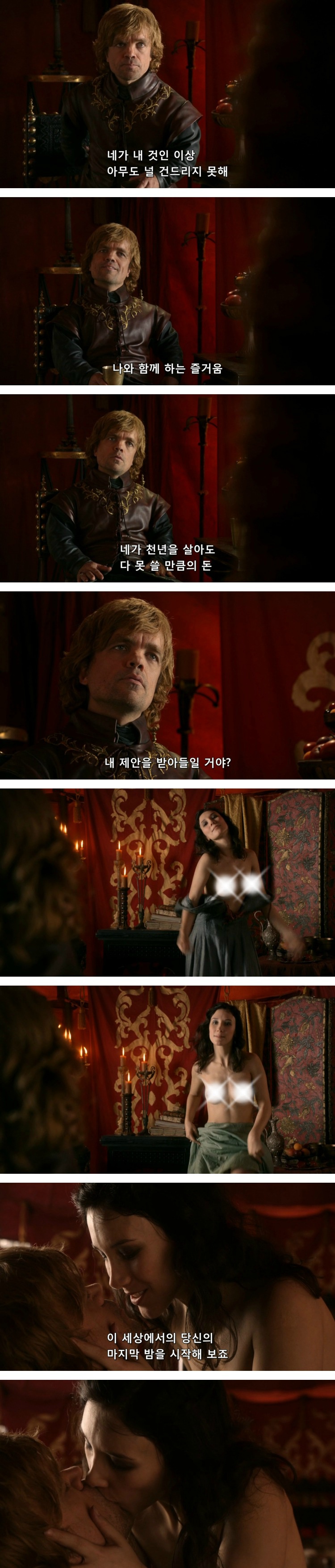 게다가 마지막으로 타이윈은 티리온에게도 화대를 주며, 강제로 타이샤를 강간하게 함