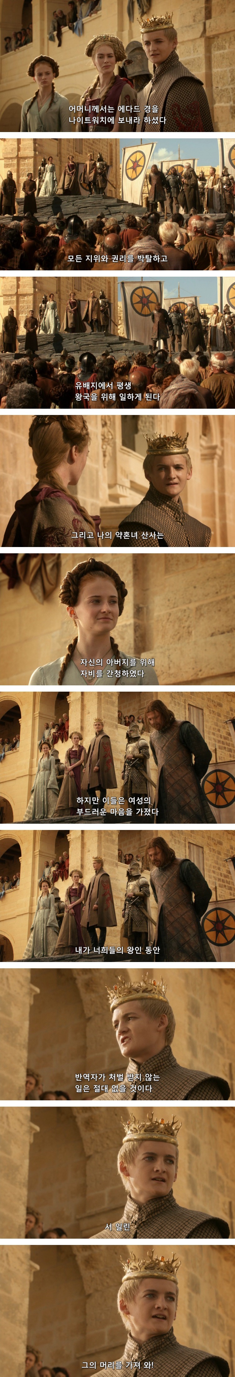 그 모든 말을 무시하고, 네드를 처형하겠다는 결단을 내려버림