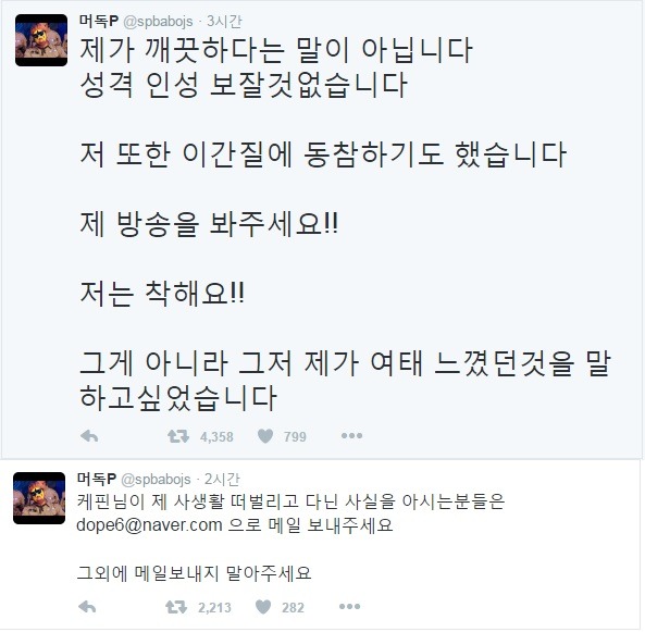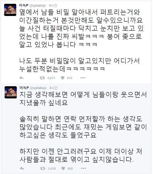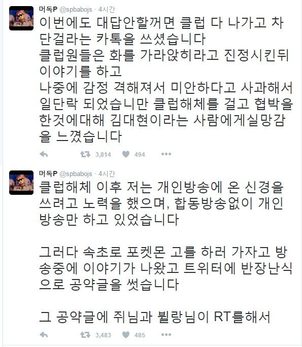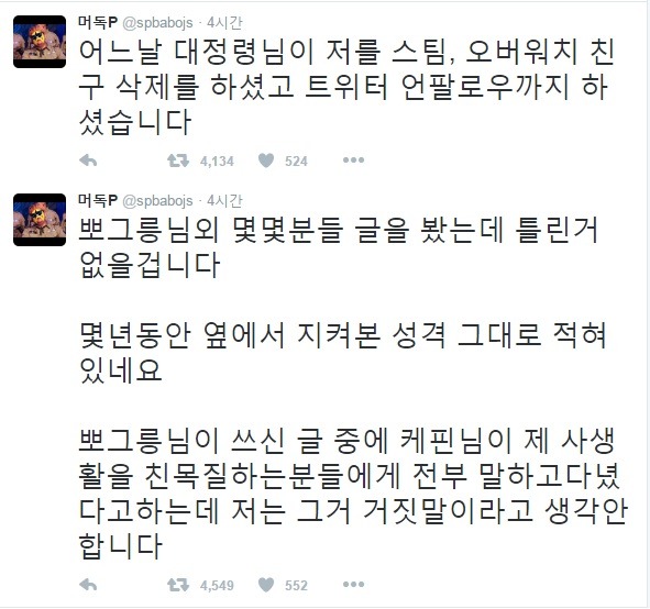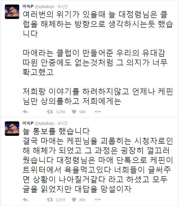 트윗 캡쳐해서 올리려고 했지만 너무 트윗개수가 많아 대충 요약하자면