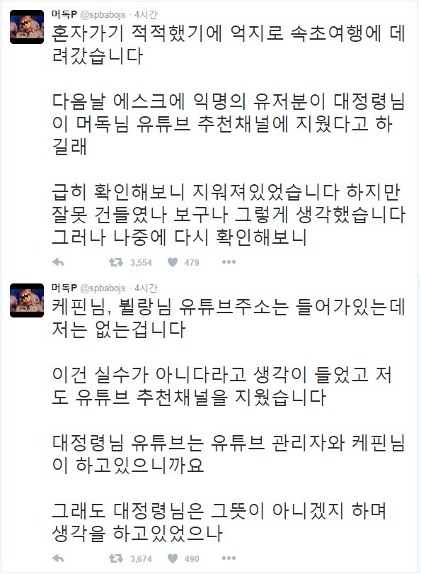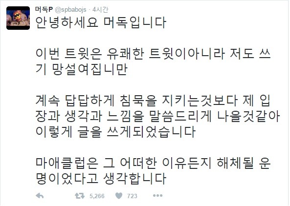 머독이 입장표명 트윗글을 올림