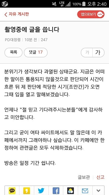 +++ 사태가 커진 후 오후 2시경 대정령이 카페에 올린 글