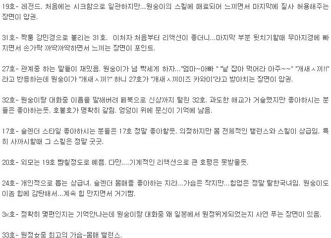 다시보는 엠팍 원정녀 평가 작성자메탈슬러그2|작성시간16.11.02|조회수32,143 목록 댓글 355 글자크기 작게가 글자크기 크게가 다음검색 현재 게시글 추가 기능 열기 북마크 공유하기 신고 센터로 신고 댓글 댓글 355 댓글쓰기 답글쓰기 댓글 리스트 작성자Kun_Aguero | 작성시간 16.11.13 ㄷㄱ 작성자까칠한케로로 | 작성시간 17.05.16 ㄷㄱ 작성자킴교 | 작성시간 17.11.21 원정녀 ㄷㄱ 작성자장도리 | 작성시간 18.08.17 원정녀 ㄷㄱ 작성자누워서땅먹기 | 작성시간 18.10.26 원정녀 ㄷㄱ 댓글 전체보기