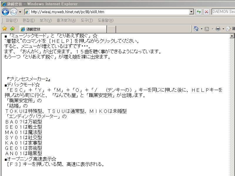 자... 영문판에 이렇게 비밀 커멘드가 존재한다면 당연히 원판인 일판에도 존재할터...