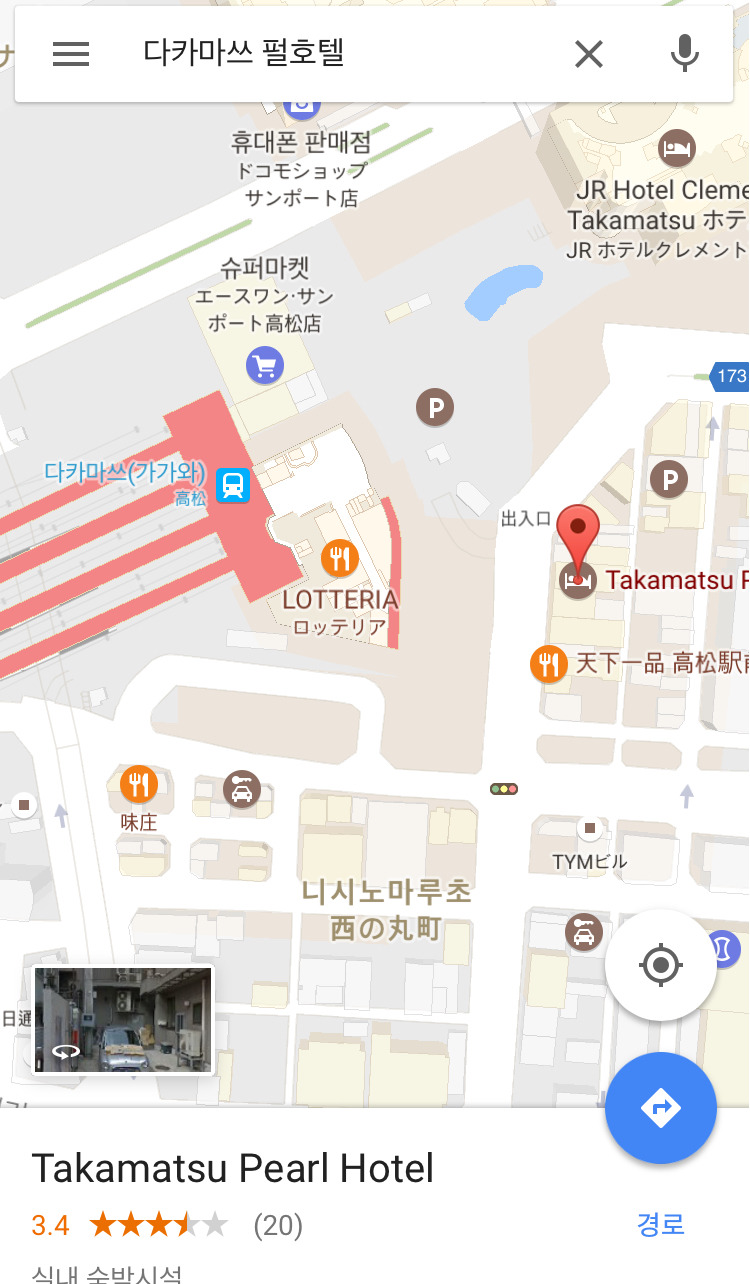 숙소는 다카마쓰역 바로앞에 위치하고 있는 펄호텔로 정했습니다.(제가 정한건 아니고 패키지로..) 딱 비지니스 호텔 생각하시면 됩니다. 크게 좋지 않던 숙소라 사진은 따로 찍을생각 조차안했네요
