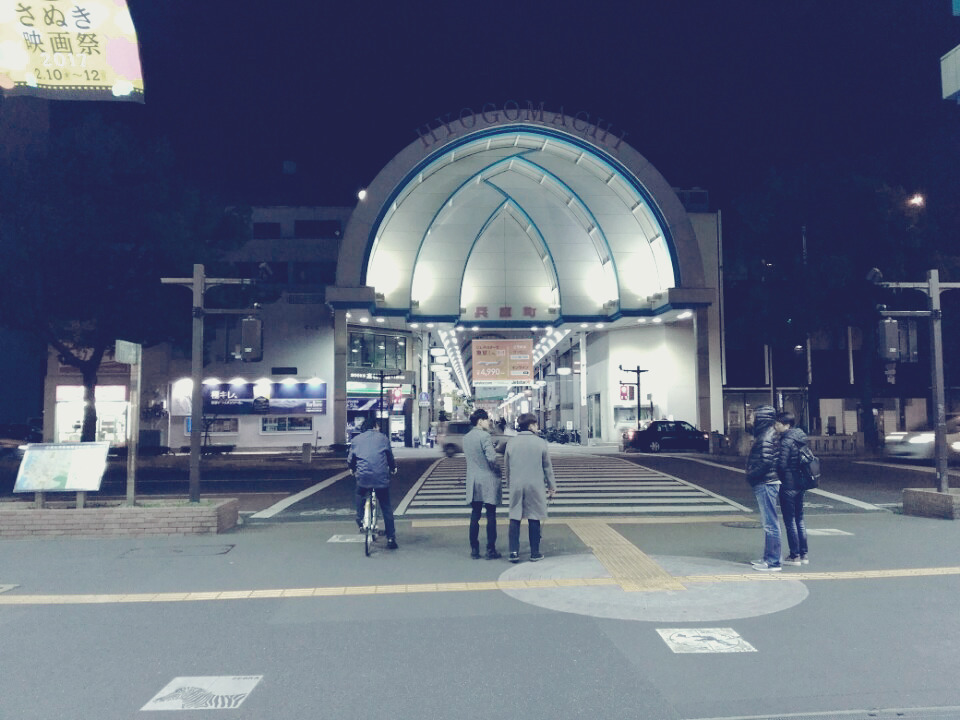 숙소에 짐을 풀고 바로 뛰쳐나왔습니다. 배가 정말 고프더라구요. 다카마쓰는 효고마치,카타하라마치,마루가메마치,라이온도리,미나미신마치,도키와신마치,도키와가이,다마치 등 8개의 쇼핑가가 합쳐 만들어진 쇼핑거리가 있습니다. 위사진은 그중 하나인 효고마치의 입구입니다.