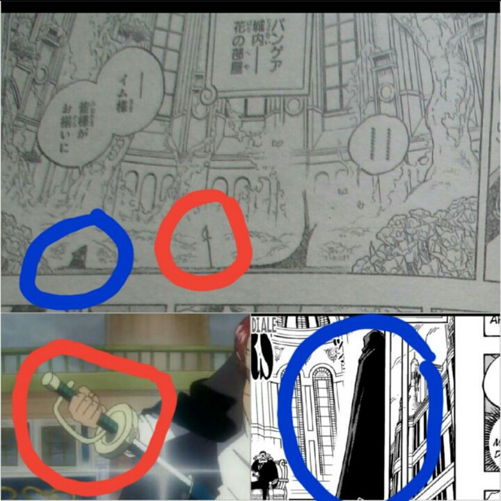 위 그림처럼 임 앞에 무릎을 꿇고 꽃혀진 검이 샹크스의 검과 실루엣이 같은걸 봐서 샹크스라 추측하면요,