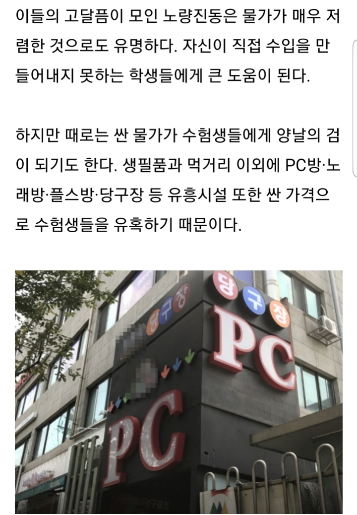 특유의 음울한 분위기 , 들어찬 공무원 학원들 , 츄리닝바람으로 돌아다니는 고시생들