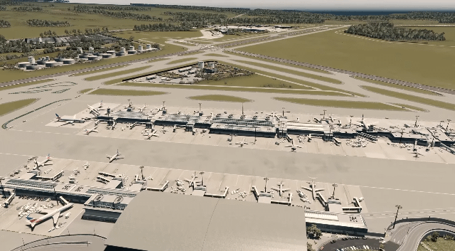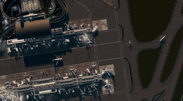 활주로부터 유도로, 터미널, 격납고, 표지시설 등등