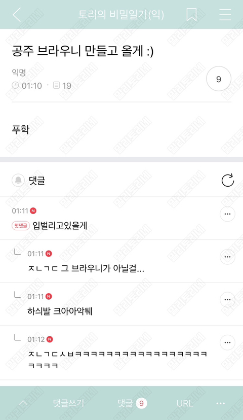 공주 브라우니 만들고 올게 :) 작성자현임|작성시간20.05.02|조회수9,487 목록 댓글 10 글자크기 작게가 글자크기 크게가 ㅅㅂㅋㅋㅋㅋㅋㅋㅋㅋㅋ 다음검색 현재 게시글 추가 기능 열기 북마크 공유하기 신고 센터로 신고 댓글 댓글 10 댓글쓰기 답글쓰기 댓글 리스트 답댓글 작성자남핵기 | 작성시간 20.05.02 밑에짤보시면 똥싸고온다는 뜻아닌가요 ㅋㅋㅋㅋㅋ 작성자아 잠깐만 뼈맞았어 | 작성시간 20.05.02 더좋은거 아닌가 답댓글 작성자하우젠에어칸 | 작성시간 20.05.02 배우신분 작성자후라보노 | 작성시간 20.05.02 ㅋㅋㅋㅋㅋㅋㅋㅋㅋㅋㅋㅋㅋㅋㅋㅋㅋ 작성자배고픈냥냥이 | 작성시간 20.05.02 으 시바 ㅂㅅ같이도 표현하네 댓글 전체보기
