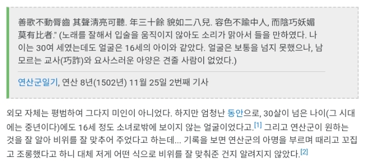 실제 장녹수는 미인이 아니지만 역대 장녹수들은 다 팜프파탈 스타일이였음