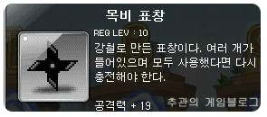 자투 + 공노목+ 파란색가운 + 메이플스론즈 + 아이젠 + 뇌전수리검