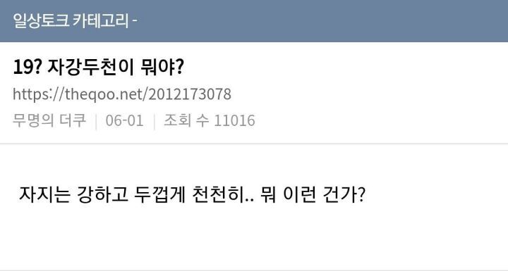 19) 새롭게 정의된 자강두천 작성자매뱅|작성시간21.06.04|조회수15,962 목록 댓글 33 글자크기 작게가 글자크기 크게가 이거 맞다 다음검색 현재 게시글 추가 기능 열기 북마크 공유하기 신고 센터로 신고 댓글 댓글 33 댓글쓰기 답글쓰기 댓글 리스트 답댓글 작성자탱빠 | 작성시간 21.06.04 별짤이 다있네 시밬ㅋㅋㅋㅋㅋㅋㅋ 답댓글 작성자접둘 | 작성시간 21.06.04 ㅋㅋㅋㅋㅋㅋㅋㅋㅋㅋㅋ 작성자너굴맨 | 작성시간 21.06.04 ㅋㅋㅋㅋㅋ 작성자희날리야 | 작성시간 21.06.04 와아 작성자중롤 | 작성시간 21.06.04 ㅋㅋㅋㅋㅋㅋㅋㅋㅋㅋ 댓글 전체보기
