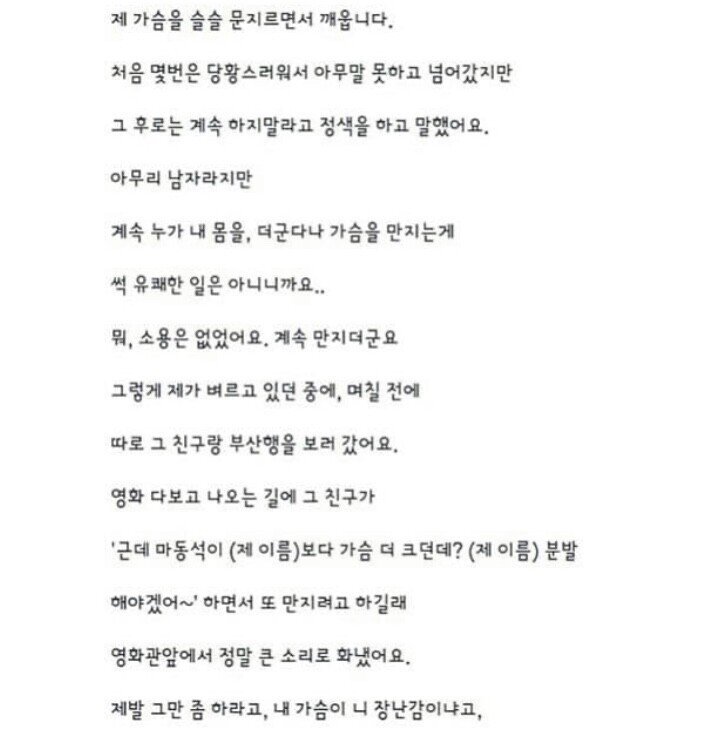 도탁스 (DOTAX) 여사친이 자꾸 제 가슴을 만져요.jpg 작성시간21.06.15|조회수11,588 목록 댓글 33 글자크기 작게가 글자크기 크게가 다음검색 현재 게시글 추가 기능 열기 북마크 공유하기 신고 센터로 신고 댓글 33 댓글 리스트 작성시간 21.06.15 몇년 전 얘기인데 이미 헤어졌을 듯 작성시간 21.06.15 ㅅㅂ 작성시간 21.06.15 ㅅㅂ ㅡㅡ 작성시간 21.06.15 ㅌ 작성시간 21.06.15 꺼져 카페 방문해 더 많은 댓글 만나기!