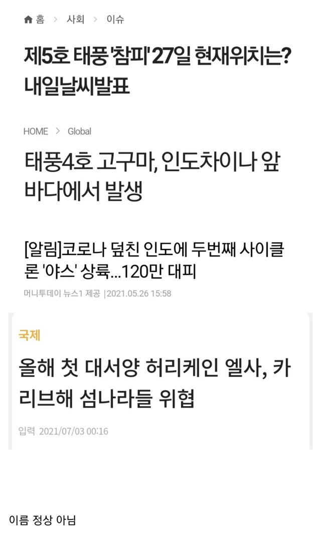 올해 태풍 이름 특징 작성자KITSUNE.|작성시간21.07.05|조회수3,061 목록 댓글 11 글자크기 작게가 글자크기 크게가 다음검색 현재 게시글 추가 기능 열기 북마크 공유하기 신고 센터로 신고 댓글 댓글 11 댓글쓰기 답글쓰기 댓글 리스트 작성자이렇게하면널가질수있을거라생각했어 | 작성시간 21.07.05 폭풍야스ㄷㄷ 작성자hiyu | 작성시간 21.07.05 참피 야스ㅋㅋㅋㅋㅋ 작성자그 손을 내밀어줘 | 작성시간 21.07.05 야스는 못참지 작성자나태한삶 | 작성시간 21.07.05 야스는 못참아 작성자아이닝 | 작성시간 21.07.05 야스ㄲㅈㅋㅈㅋㅋㅋ 댓글 전체보기