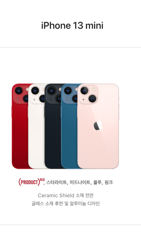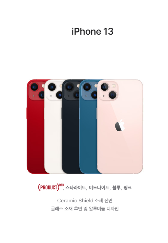 스타라이트, 미드나이트, 블루, 핑크, 프로덕트 레드 총 5가지 색상