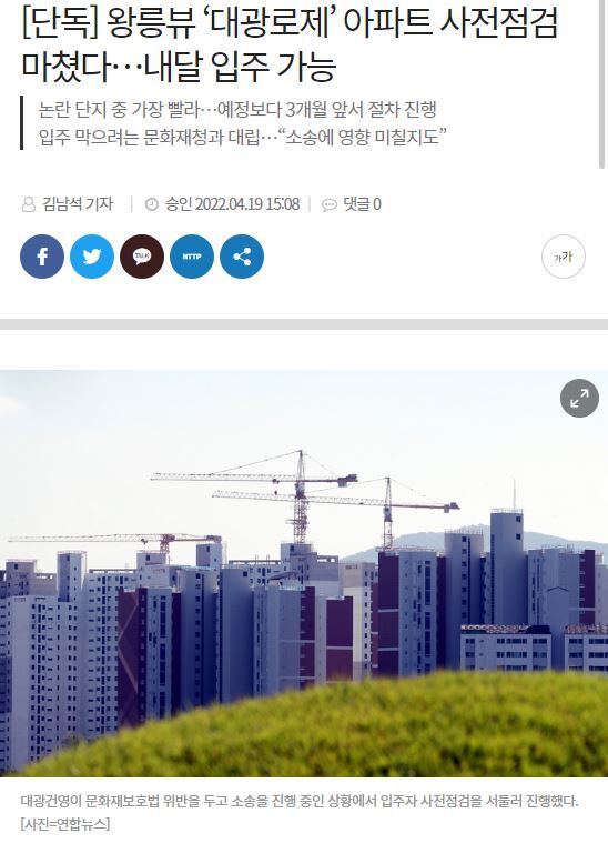 답댓글 작성시간 22.04.20 애초에 건설사에서 직접 허가변경 허가를 받아야 하는데 해당 과정이 생략되어있다고 뻔히 나오는데요? 2014년 현상변경 허가를 완료했다고 하지만 그건 고층 아파트에 대한 허가가 아니였고 해당 아파트에 대한 허가를 직접 받지 않았는데 공무원, 문화재청이 잘못한거다! 라는거는 너무 건설사 입장에서 바라보시는거 같네요.