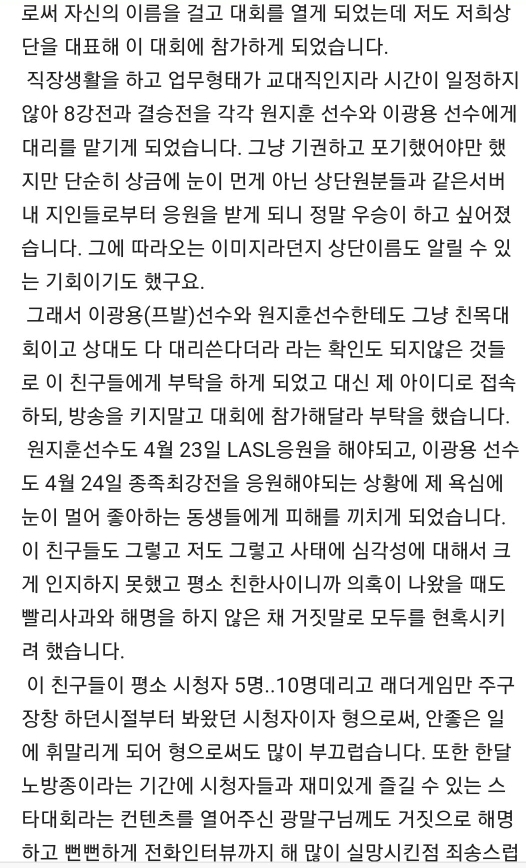 4. 8강에서 붙은 상대가 의문을 제기하였고 대리 출전한 프발과 원지훈이 자수를함