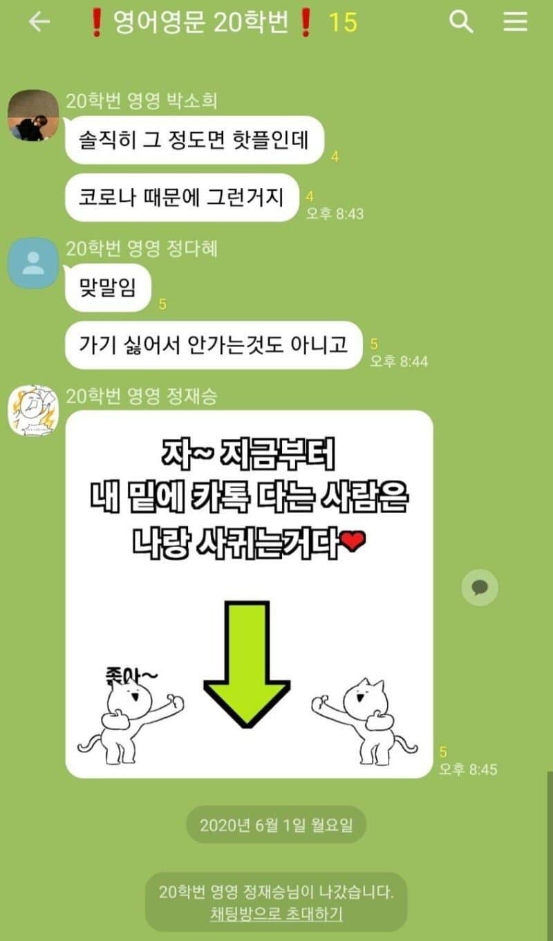 도탁스 (DOTAX) 싱글벙글 동기 단톡방 대참사.JPG 작성시간22.04.28|조회수56,176 목록 댓글 8 글자크기 작게가 글자크기 크게가 다음검색 현재 게시글 추가 기능 열기 북마크 공유하기 신고 센터로 신고 댓글 8 댓글 리스트 작성시간 22.04.28 영영재승이 영영갔노.. 작성시간 22.04.28 이누공 ㅠㅠ 작성시간 22.04.28 저런 거 올릴 수 있는 거 보니까 걍 두루두루 친해서 저럴 수 있긴 함 ㅋㅋㅋㅋㅋㅋㅋㅋㅋㅋㅋㅋ 작성시간 22.04.28 존야걸렸네 ㅋㅋㅋㅋ 작성시간 22.05.03 방패쇄 란거지? 카페 방문해 더 많은 댓글 만나기!