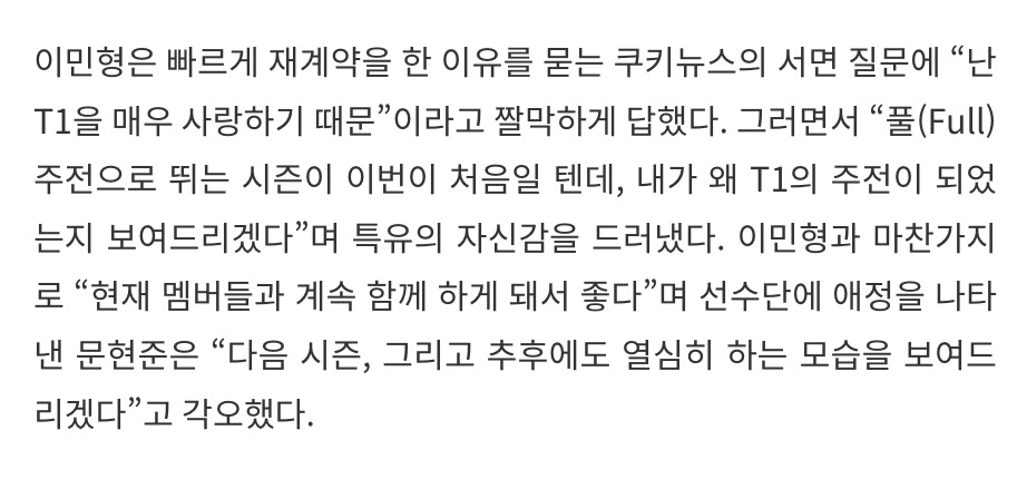 재계약 이유, 구마유시 “난 T1을 매우 사랑하니까”