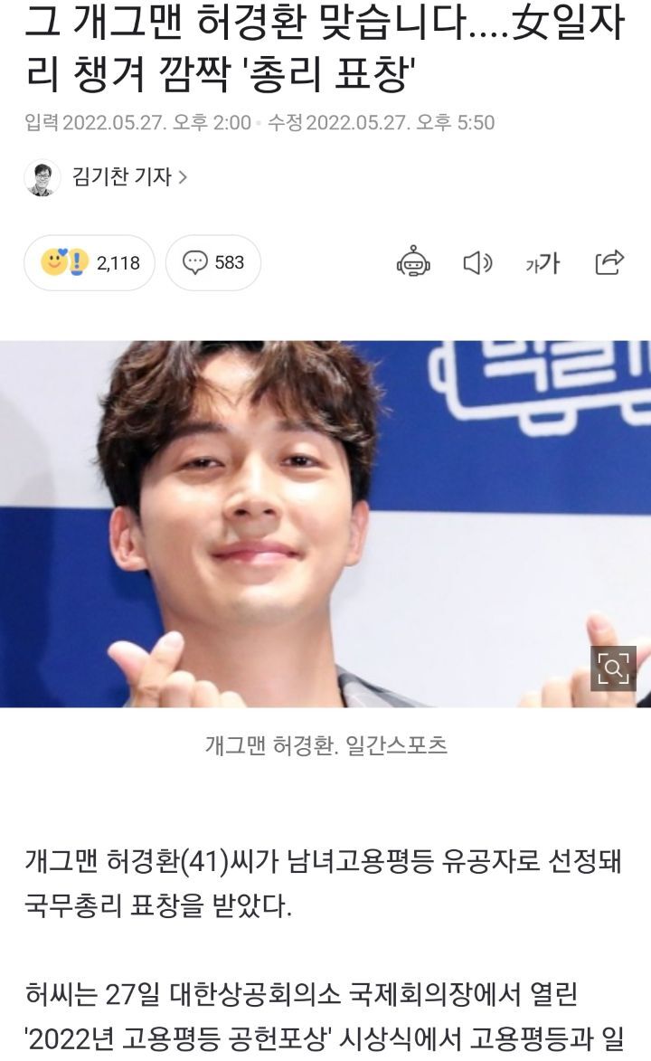 근데 남녀평등 유공자는 또 뭐야 저런게 있었음? 나라 미쳐돌아가네...