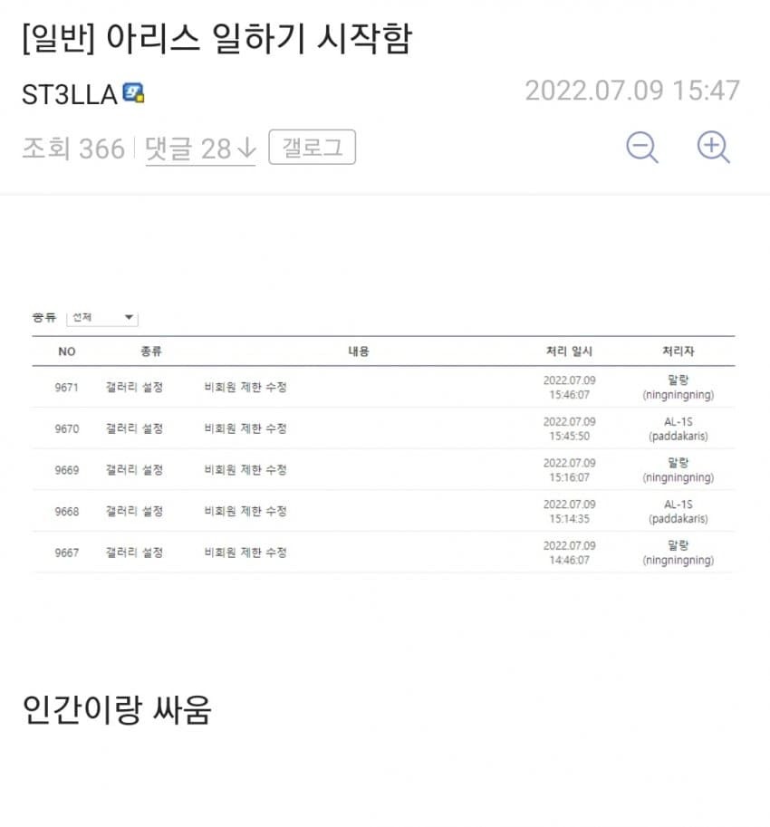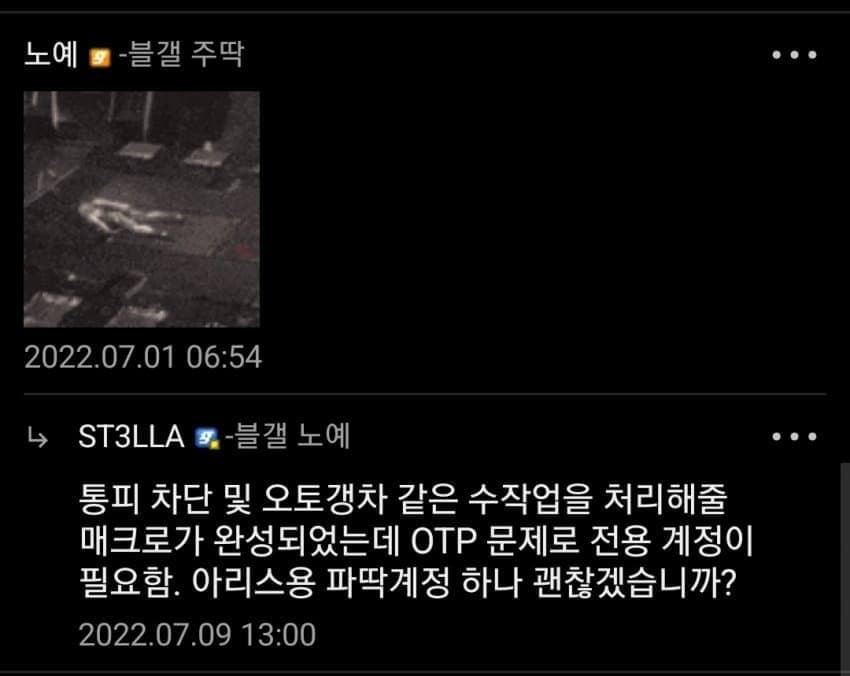 작성시간 22.07.09 근데 갤에서 매크로나 봇돌리면 귀신같이 갤폐쇄하는걸로 아는데.. 완장이 저렇게 대놓고 봇쓴다고 말하고다닌다는건 좀..