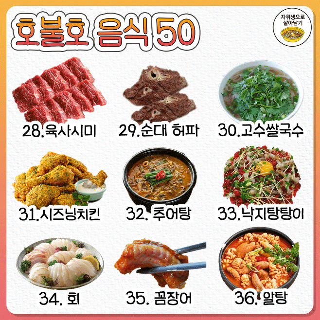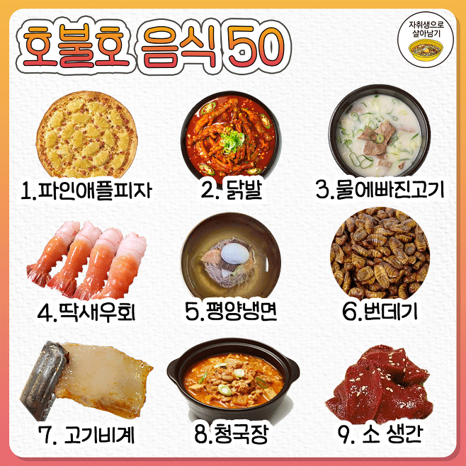 이 50가지 음식들 중 불호는?? 대부분 여건이 안 되어서 못 먹지 않나....