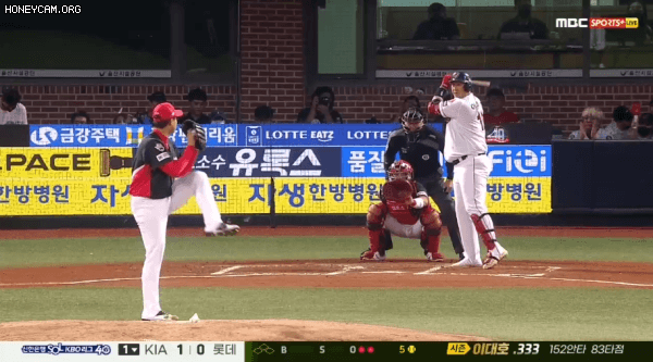 포수 뒤에 카메라 찍는 사람이 섬광탄 터트림