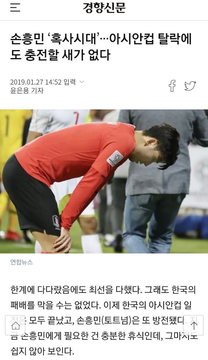 1. 아시안컵 8강 탈락과 손흥민 혹사 논란 (2019년 1월)