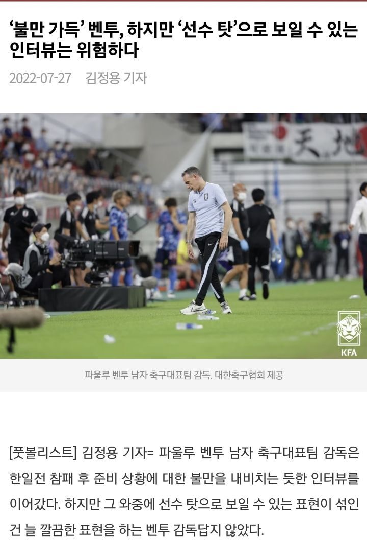 또, 도요타 참사 후 벤투의 논란의 인터뷰는 늘 깔끔한 인터뷰를 해왔던 벤투기에 아쉬움이 남았다.