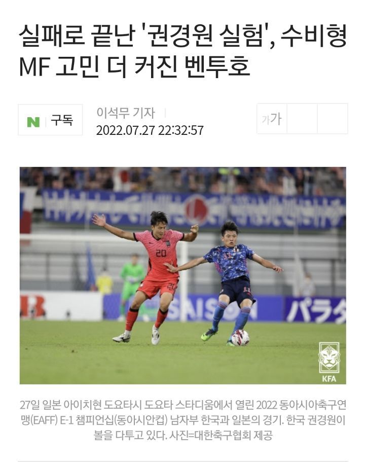 벤투는 요코하마 참사에서는 이강인 제로톱, 도요타 참사에서는 권경원 수미라는 무리한 실험을 감행해 많은 비난을 받았다.