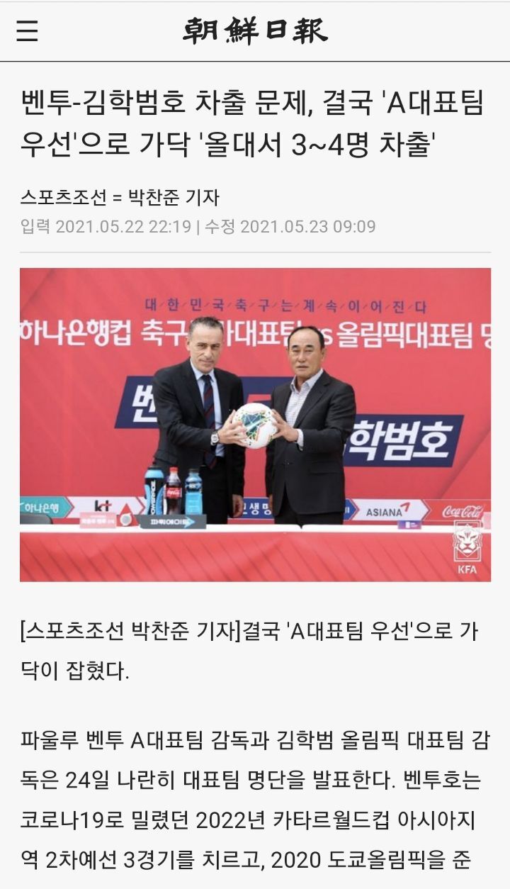 그리고 도쿄올림픽 직전에 선수 차출 문제로 서로 다소 갈등이 있었는데