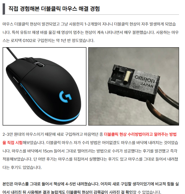 필자는 로지텍 무선마우스 유저인데 최근 또다시 로지텍의 고질병인 더블클릭 문제가 생김
