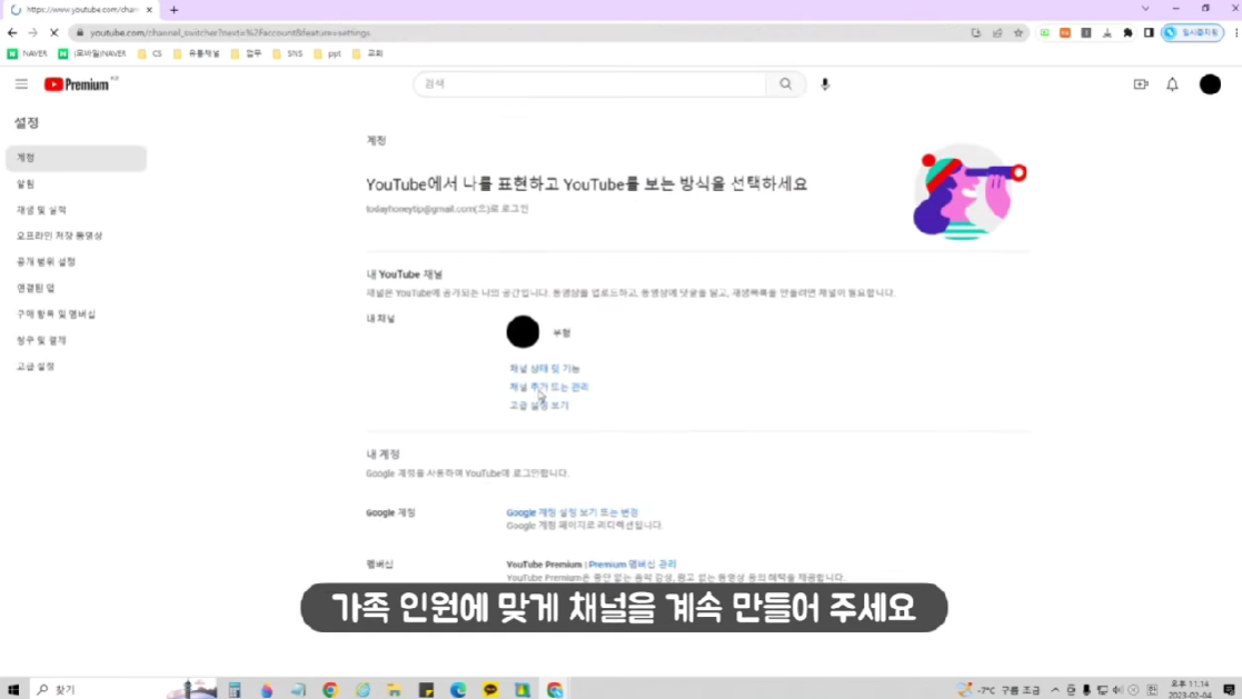 3. 새 채널 만들기 - 가족 인원수대로 채널 생성