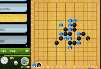 오히려 파란색 돌이 흑색돌보다 1수가 앞서는 상황이 되버림