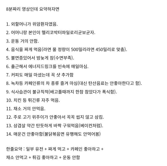 저정도면 암 전에도 증상있었을텐데