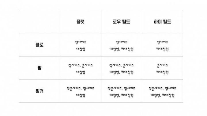 위에서 알아낸 본인의 성향을 기억하고 이 표를 보면서 본인에게 맞는 마우스를 찾으면 된다.