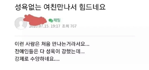성욕 없는 여친 만나서 힘드네요.jpg 작성자칸유|작성시간23.06.18|조회수10,664 목록 댓글 14 글자크기 작게가 글자크기 크게가 다음검색 현재 게시글 추가 기능 열기 북마크 공유하기 신고 센터로 신고 댓글 댓글 14 댓글쓰기 답글쓰기 댓글 리스트 답댓글 작성자wagtaiL | 작성시간 23.06.20 찬튜라 진짜 목각인형이 됨 작성자얼굴천재태연 | 작성시간 23.06.18 모든지 적당해야 작성자영속 | 작성시간 23.06.18 안맞으면 개 힘듬... 작성자살구맛살구 | 작성시간 23.06.18 와 성욕없는 여친 만나본적없어서 모르지만 상상으로도 연애는 못할듯 ㅋㅋㅋ 작성자우리집 몽이 | 작성시간 23.06.18 나는 반대인데..ㅠㅠ 댓글 전체보기