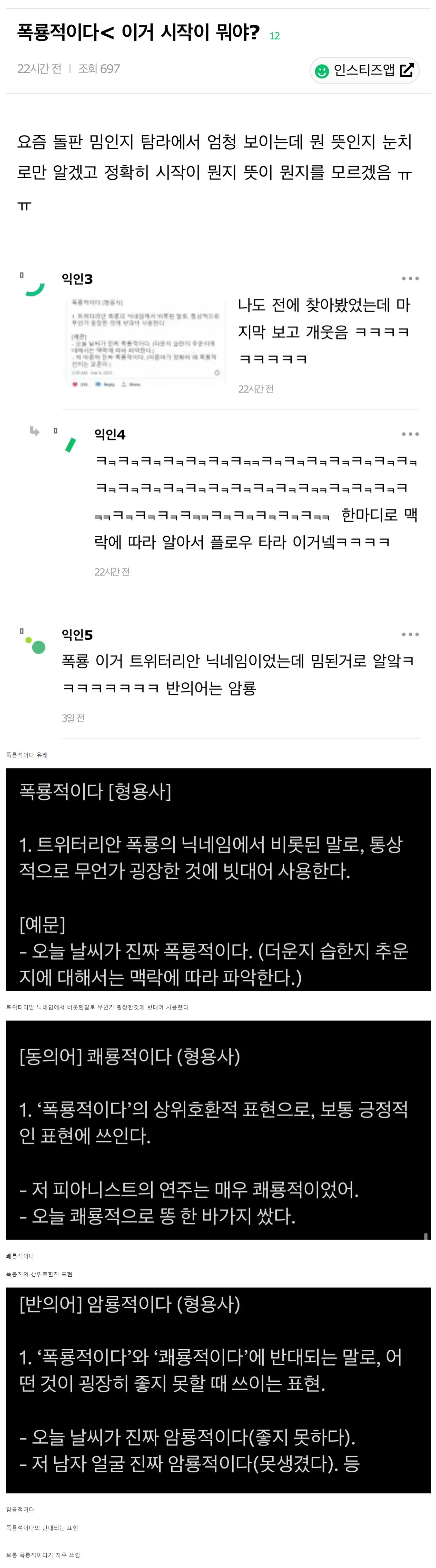 요즘 트위터에서 유행하는 단어 "폭룡적이다" 작성자CONDUCT|작성시간23.07.15|조회수9,978 목록 댓글 41 글자크기 작게가 글자크기 크게가 다음검색 현재 게시글 추가 기능 열기 북마크 공유하기 신고 센터로 신고 댓글 댓글 41 댓글쓰기 답글쓰기 댓글 리스트 작성자2023년아이유콘갈사람 | 작성시간 23.07.15 이거 폭룡이네요 작성자롯데 자이언츠 | 작성시간 23.07.15 롯데적이다 작성자슬기비니츄 | 작성시간 23.07.15 폭룡의 시적이다 작성자SIMON D | 작성시간 23.07.15 폭룡의 시… 작성자확실한취향 | 작성시간 23.07.15 내꼬추 폭룡 댓글 전체보기