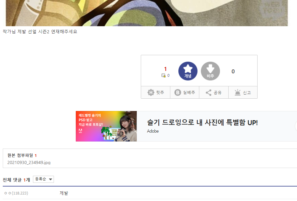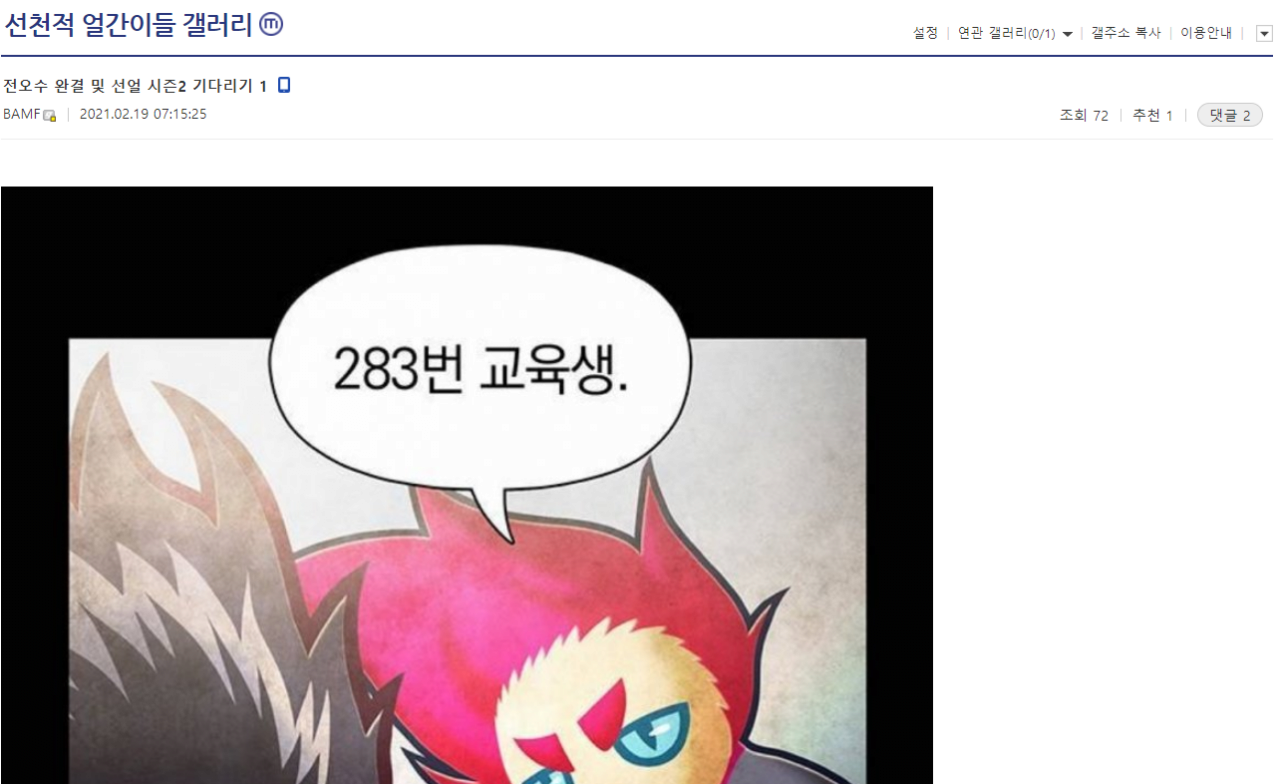 하지만 이미 완결난지 몇년된 웹툰이라 글리젠은 없었고