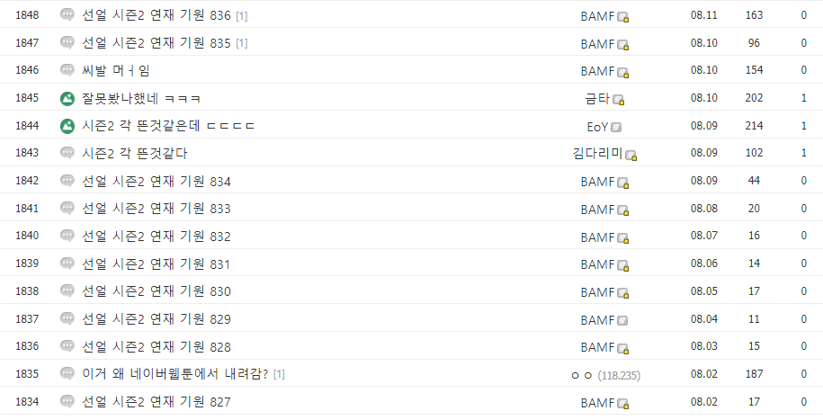 그리고 결국 시즌2 연재 기원글 911일째 되는 날,