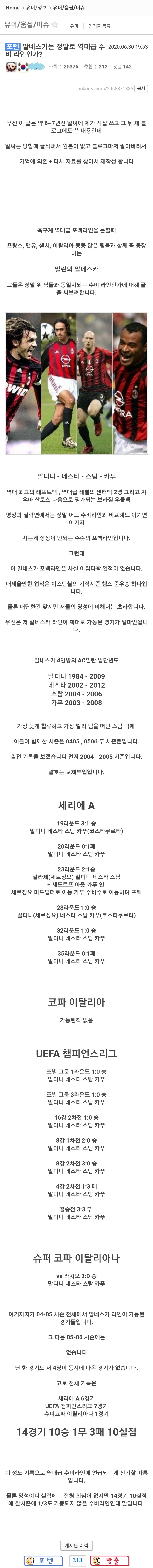 1. 밀란은 센터백 말디니ㅡ네스타 조합으로 0203 챔스, 0304 세리에 우승을 했다.