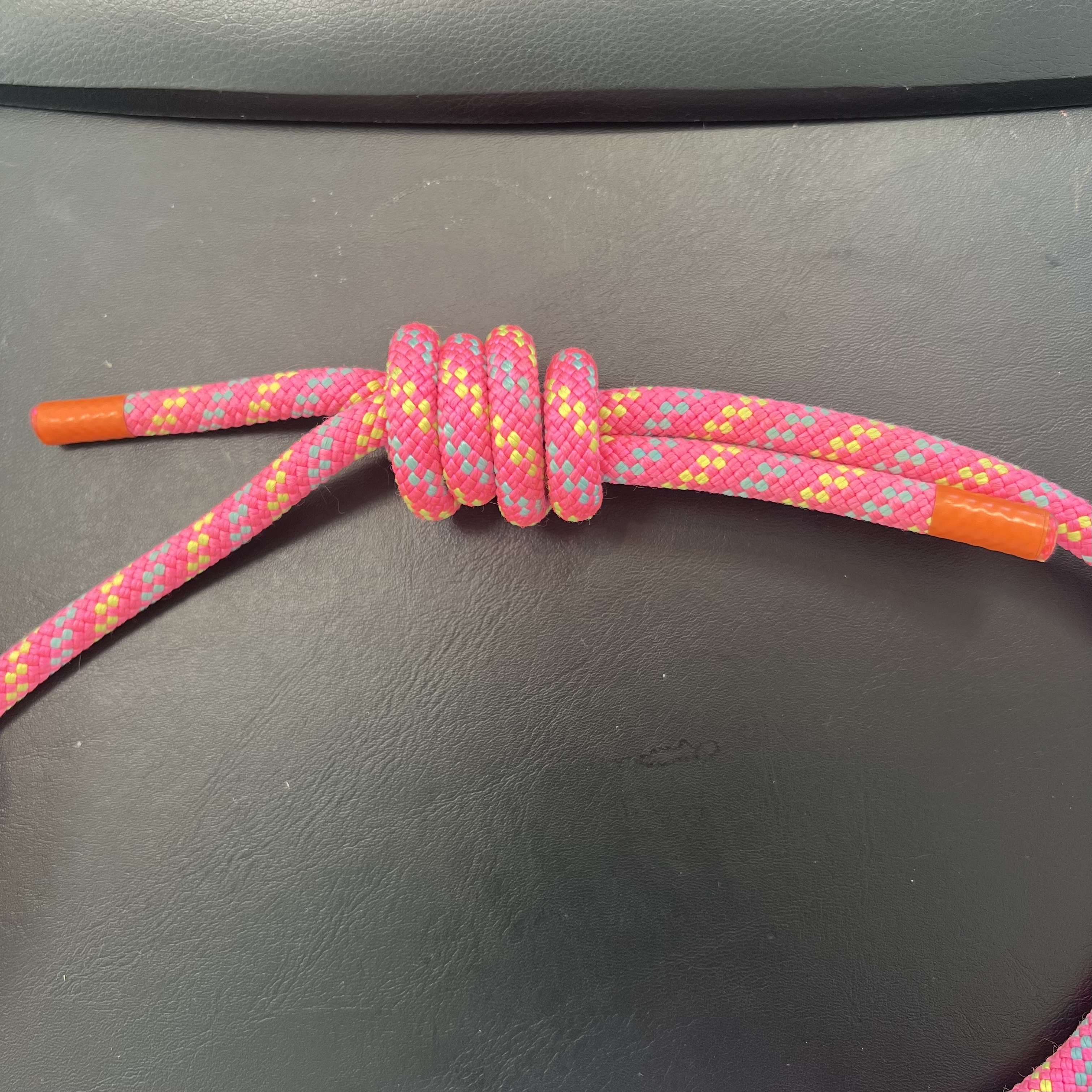 양 옆으로 당기면 단단하게 조여지긴 하지만, 풀리는 경우가 생길 수 있기 때문에 양 끝 단을 옭매듭으로 마무리 하면 더 안전하게 사용이 가능합니다.
