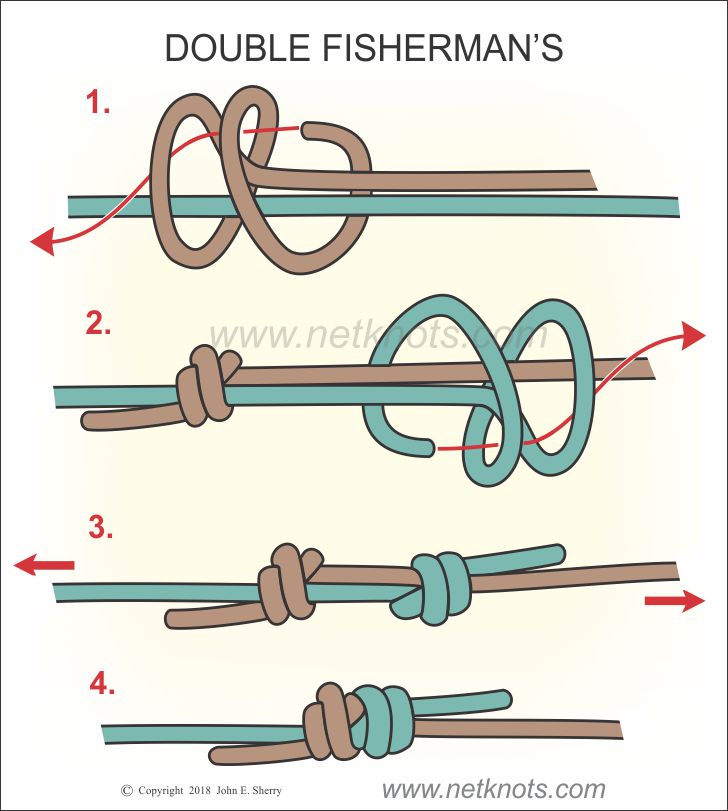 로프를 연결할 때 제가 가장 선호하는 매듭입니다. (Double fishermen's knot)